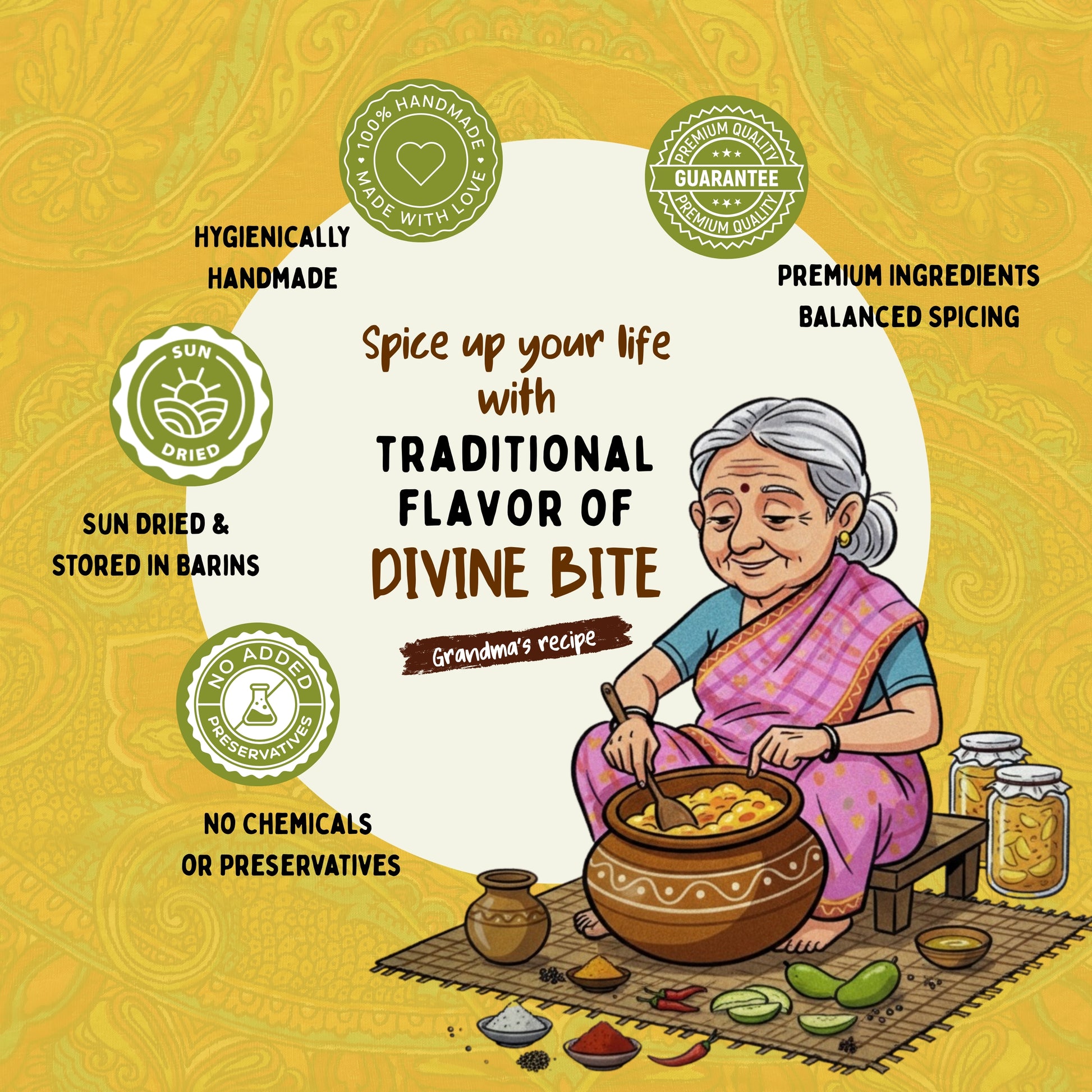 Yes, every Divine Bite pickle and chutney is made from 100% organically grown fruits, vegetables, and spices sourced directly from trusted village farmers. We use no chemicals, no artificial flavor, and no preservatives — only nature’s pure goodness.